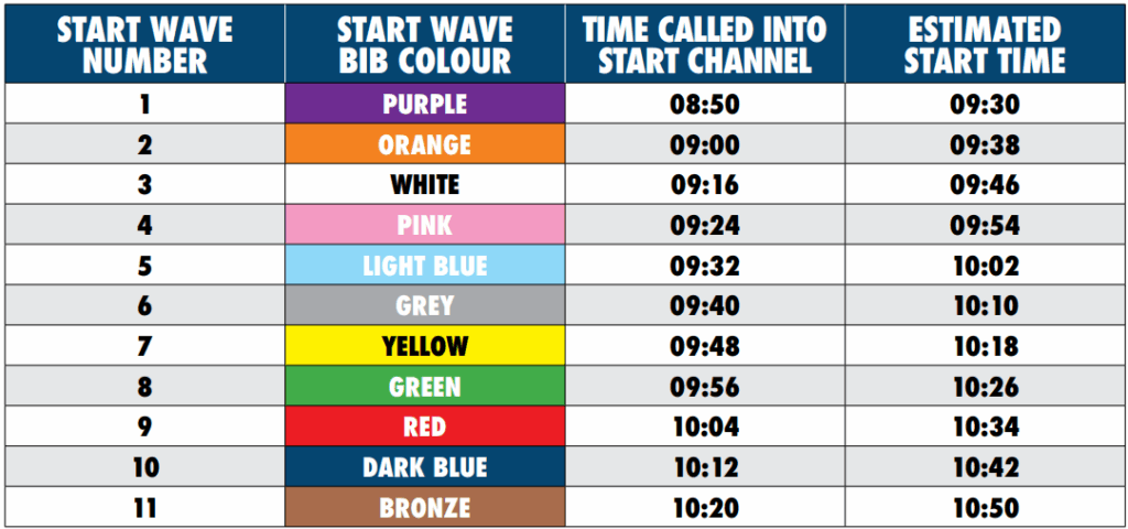 🕑 Note the time your wave will be called into the start channel to ensure you arrive in good time to begin the start process.
